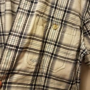 Size M wears more like a large and longer in length than usual for a short sleeve button up. Never worn washed once
