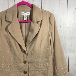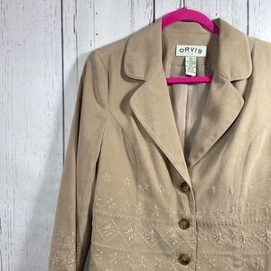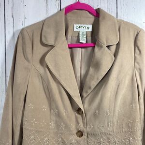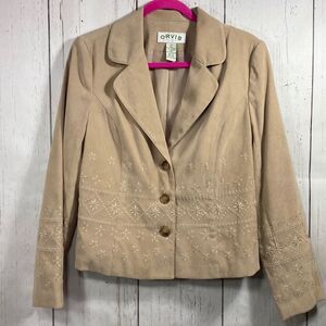 Orvis Vintage Tan Embroidered Blazer Jacket Womens 12 Classic Button Front Cottagecore Preppy