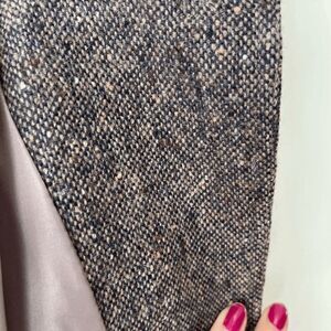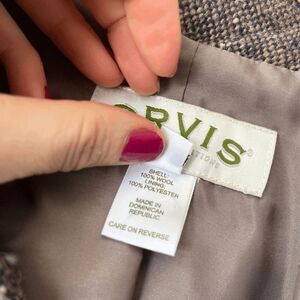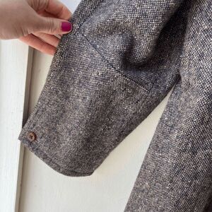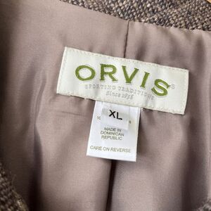 Timeless and rugged, this Orvis wool chore jacket is a high-quality workwear staple with a refined touch. It is vintage from the 1990s. Crafted from 100% wool in a classic brown tweed pattern, it features a structured yet relaxed fit with functional design details. The jacket boasts a traditional button front, spacious patch pockets for utility, and a single chest pocket with button closure. The wood buttons are embossed with "Orvis Since 1856," adding a heritage touch. Fully lined for comfort, this piece is ideal for layering in cooler months. The midweight wool fabric offers warmth without bulk, making it a versatile wardrobe essential for both outdoor adventures and urban styling. A unisex design in size XL, perfect for a relaxed yet polished look.
