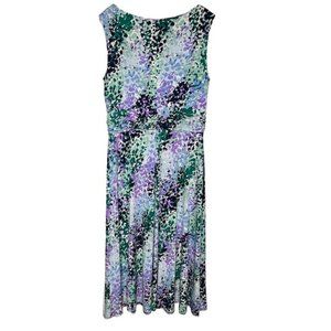 Orvis Watercolor Sleeveless Fit/Flare Dress - Purple/Green/Blue - 14
