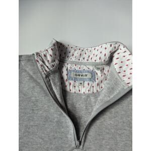 Orvis Woman's Quarter Zip Size Medium Grey Cotton Blend Fold Up Sleeve