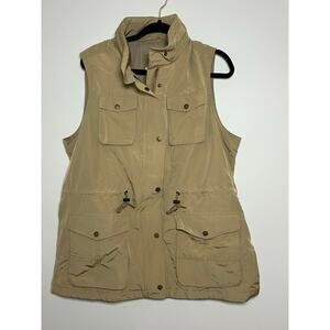 Orvis Woman’s Safari Vest Tan Cinch Waist Many Pockets Fall Lightweight Size XL