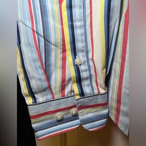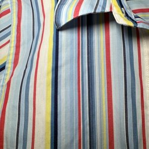 Orvis Woman’s Striped Button Up Blouse Blue Red Yellow Size 12 Collared LS