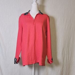 Orvis Womens 1/4 Zip Pullover XL Sweater Shirt Salsa(pink)Floral Trim