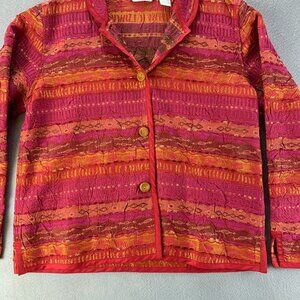 Orvis Womens Blazer Jacket Medium Red Orange Button Textured Polyester Casual