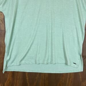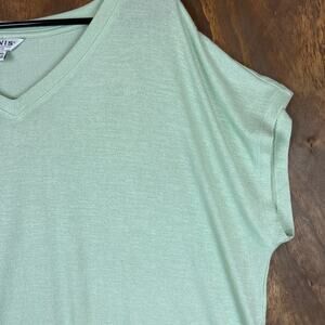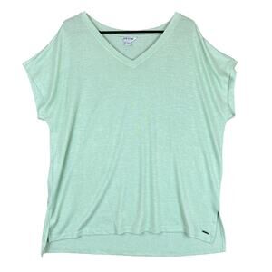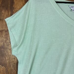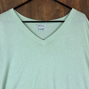 Orvis Womens Blouse Green Tee Classic Collection V Neck Slit Hems Stretch XL