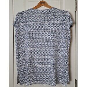 Orvis Women's Blue Ikat Tunic Short Sleeve V-Neck Geometric Top Size L