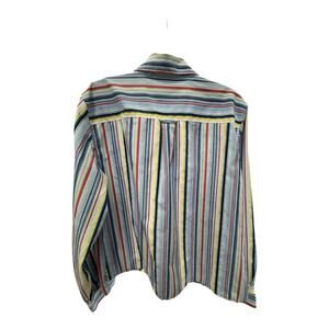 The Orvis Women's Button Front Shirt is a vibrant multicolor striped top in size 18, designed for a casual occasion with a collared neckline and button closure. Made from a comfortable cotton blend fabric, this long-sleeve shirt features a classic and colorful style suitable for all seasons. The regular fit and basic design make it a versatile wardrobe staple for any woman looking for a flattering and stylish option. Easy to care for with machine washable instructions, this shirt is an essential piece for everyday wear.
