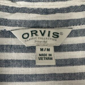 Orvis Womens Button Up Top Size Medium Linen Blend Striped Nautical Beachy
