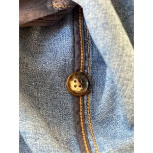 Vintage Denim Car Coat/Blazer from Orvis. 3-Button Front and front pockets. Long sleeves. 97% cotton, 3% spandex.