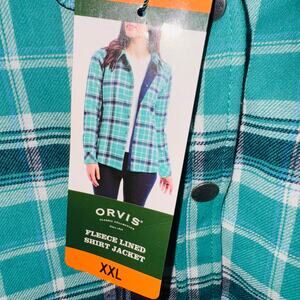Orvis Women’s Green Plaid Long Sleeve Fleece Lined Flannel Shacket Shirt XXL