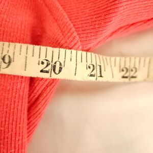 * Color is pink or a pinkish red with floral graphics on the neckline and inside of cuffs.