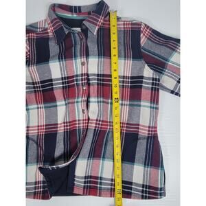 Orvis Womens Large Plaid Tartan Red Blue Shacket Jacket Fleece Lined 1316588