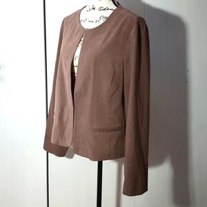 Orvis- Womens Light brown Open Blazer/ Suit Coat Suede front slip pockets Sz.12