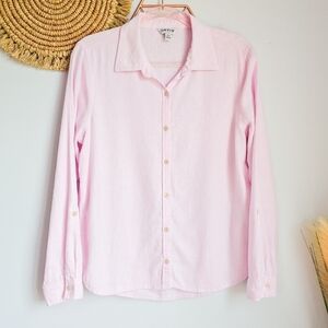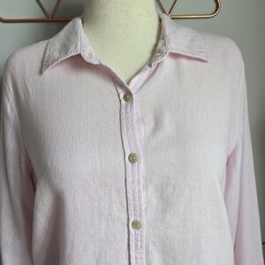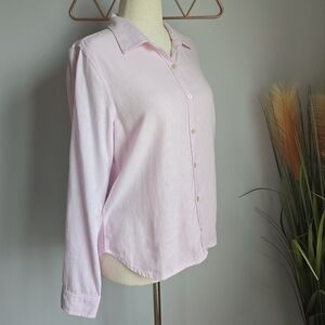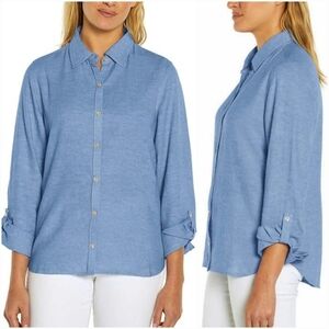 Orvis Women's Linen Blend Button Front Long Roll Tab Sleeve Shirt Size Medium