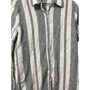 Orvis Womens Linen Blend Long Sleeve Button Down Roll Tab Black White Small