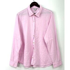 Orvis Womens Linen Shirt Pink Sz XL Button Up Roll Tab Sleeve Linen Blend 1056T2