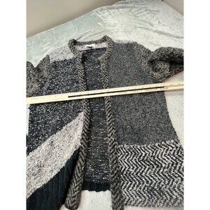 Orvis Womens Medium Patchwork Cardigan Sweater Geometric Wool Blend 66G3 BOHO