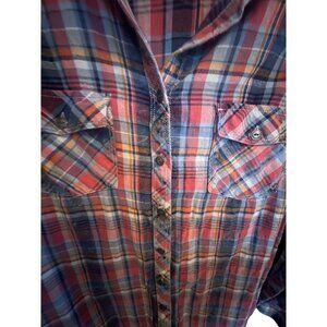 Orvis Women's Medium Plaid Flannel Button Down Shirt Western Style Blue and Red