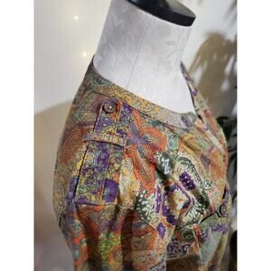 Orvis Womens Paisley Boho Mandala Shell Button Blouse Size 16 Multicolor Hippie