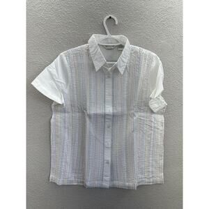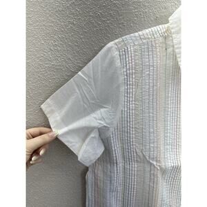 Orvis Womens Shirt Size 12 Rainbow Striped Pin-Tuck Short Sleeve Button Up