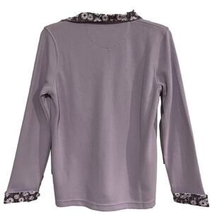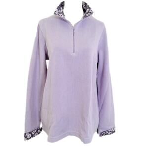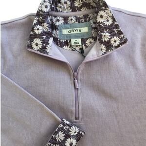 Elegant Orvis pullover with a lavender hue. Features a floral-patterned collar for a unique touch.