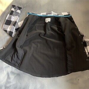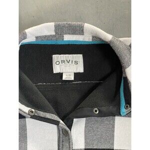 Orvis Womens Sz L Snap Front shirt Jacket Buffalo Plaid Fleece Lined Black White