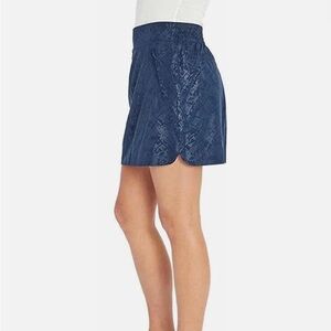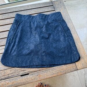 Stylish navy mini skirt with a textured design. Perfect for casual outings. This fits more like a small. It’s runs big in the waist like new