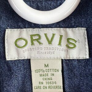 Orvis Womens Vest Denim Button Striped Pockets Cotton Size Medium