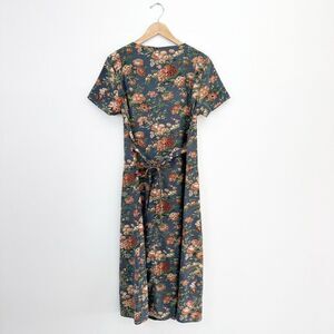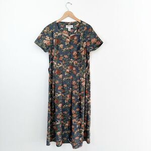 Orvis Women’s Vintage Floral Short Sleeve Button Front Dusty Cool Tone Cottage Core Maxi Dress