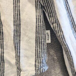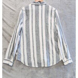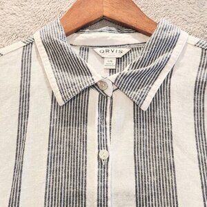 Orvis Womens White Striped Linen Blend Button Up Blouse Size Large Beach Coastal