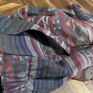 This Orvis wrap skirt in size M features a Southwestern Aztec pattern in a multicolor design. It has an elastic waist, side zip closure, and tie pockets for added convenience. Made from a cotton blend material, this lightweight skirt is suitable for all seasons and occasions, including travel, weddings, parties, casual wear, workwear, and business settings. The skirt is designed with a modern twist on bohemian and cowboy themes, making it a versatile and stylish addition to any wardrobe.