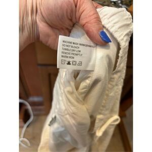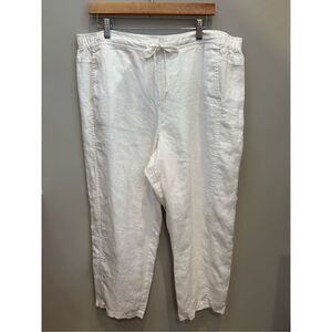 Orvis XL cream lined linen loose fit drawstring elastic waist pants - side pockets - linen