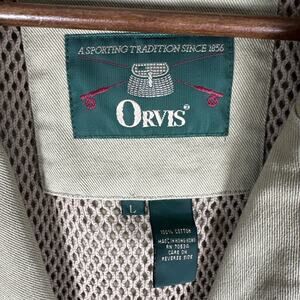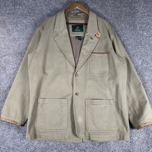Orvis Zambezi Jacket Men L Tan 2-Button Cotton Leather Trim Safari Field Coat