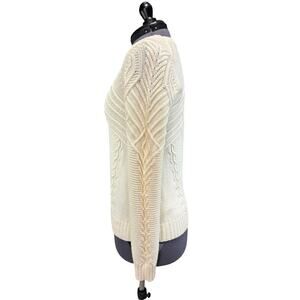 Orvis cable knit wool blend crew neck sweater Women's Size S Cream / Off White