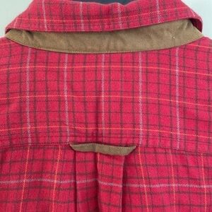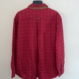 The plaid fabric in these Perfect shirts is the softest flannel you will ever find, thick and brushed on both sides for maximum softness and comfort. Long-sleeved shirt with button-through patch pockets. Distinctive washable faux-suede trim on the outside neckband, bound buttonholes at the pockets, and locker loop. Long shirttail hem stays tucked in. Spread collar, two-button adjustable cuffs. Classic fit.
