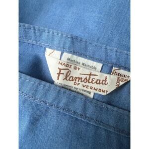Plumstead of Vermont made for Orvis light blue lightweight denim look tie waist wrap skirt, rare vintage find with assorted mushroom skirt trim