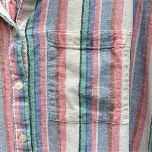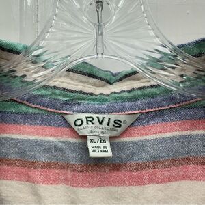 Orvis linen blend button down short sleeve blouse women's xl. pit to pit is 26.5 shoulder to hem 24.5 front 25.5 back.