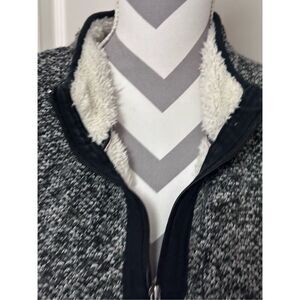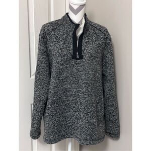 Orvis Men's Brighton Quarter Zip Sweater in gray/black size XL. Sherpa fleece lining for warmth. Slim fit makes it a unisex option. See pics for measurements and condition.