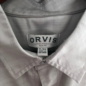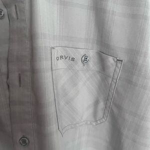 Orvis men’s XL short sleeve button down woven tech shirt grey plaid lightweight