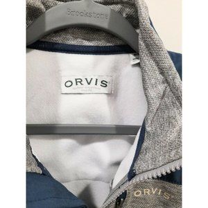 Orvis men's bonded mesh fleece full zip jacket in Grey & Blue Size Medium