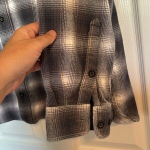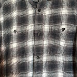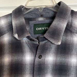 Orvis men’s gray and white plaid button down shirt jacket size XL