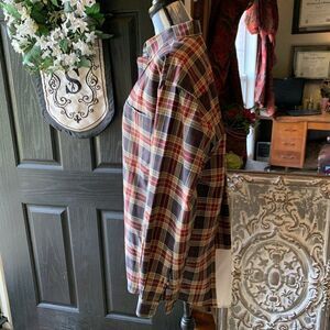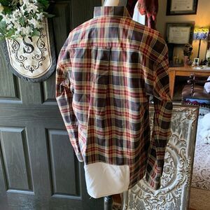 Orvis long sleeve plaid with rare mesh insert at the bottom back of the dress shirt, excellent used condition recently dry cleaned smoke free pet friendly home