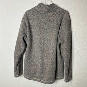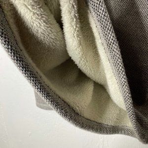 If you need to be warm…you need this! Soft fleece lining on the inside with a subtle black and cream cotton tweed finish on the outside. Despite the sturdiness and warmth, this pull over is light weight and has some stretch. Relaxed fit….Length 31” bust 23.5”. Excellent condition. Smoke free home.
