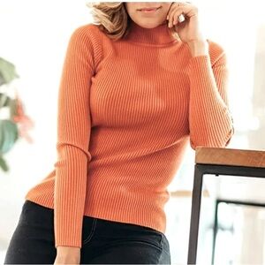 This preowned Orvis long-sleeve turtleneck ribbed knit sweater is in excellent preowned condition, showcasing both quality and style. Made from soft, warm materials, it’s ideal for layering and perfect for crisp fall days. The classic turtleneck design adds a timeless touch, making it a versatile choice for any autumn wardrobe. Cozy, comfortable, and well-made, this sweater is ready to keep you stylish all season long.