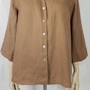 Orvis tan light brown 100% Linen button front shirt blouse ladies Large 14-16