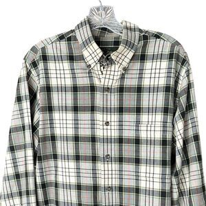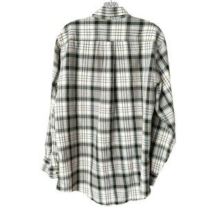 Orvis Mens Long Sleeve Button Down Shirt Cotton-Flannel Plaid Green/Cream Large
