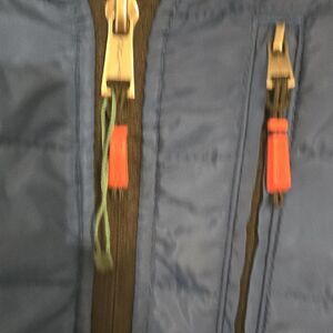 Navy quilted jacket with zip closure. Comfortable and stylish design.