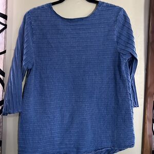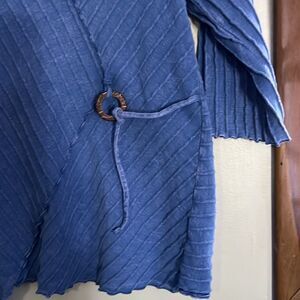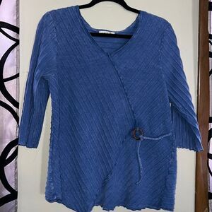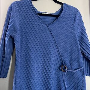 Orvis Shirt Top Womens Medium Blue Wrap Ribbed 3/4 Sleeve Casual 3/4 Sleeve Ring