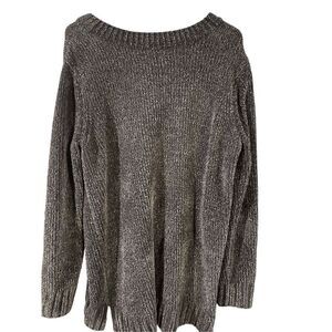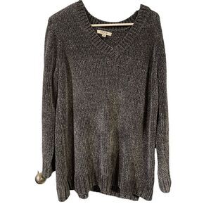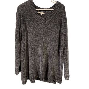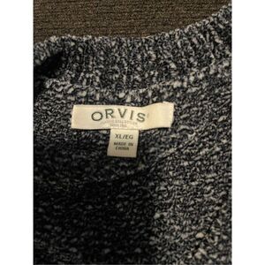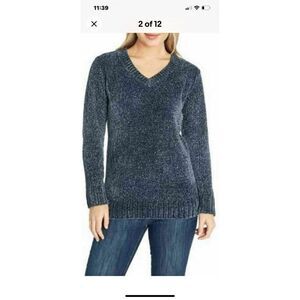 Orvis Chenille V Neck Sweater Dark Blue /Grey . Very soft 100 percent polyester per tag . looks cozy . i have terrible lighting this is dark blue and beautiful super soft